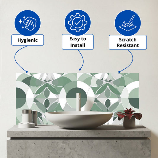 Hexagonal Geometric Pattern Glass Bathroom Splashback