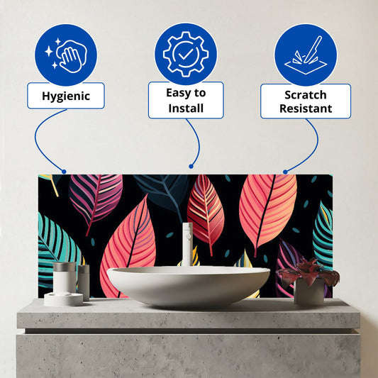 Colourful Leaves Pattern Glass Bathroom Splashback