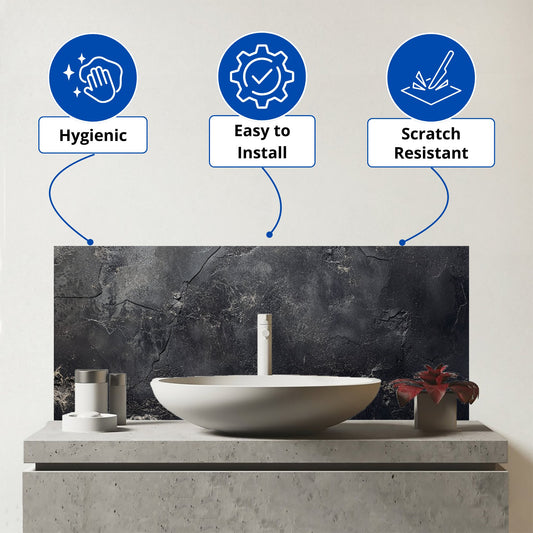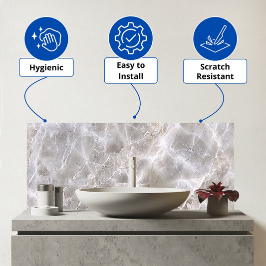 Polished Grey Marble Effect Glass Bathroom Splashback