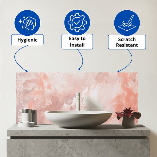 Minimalistic Pink Grunge Effect Glass Bathroom Splashback