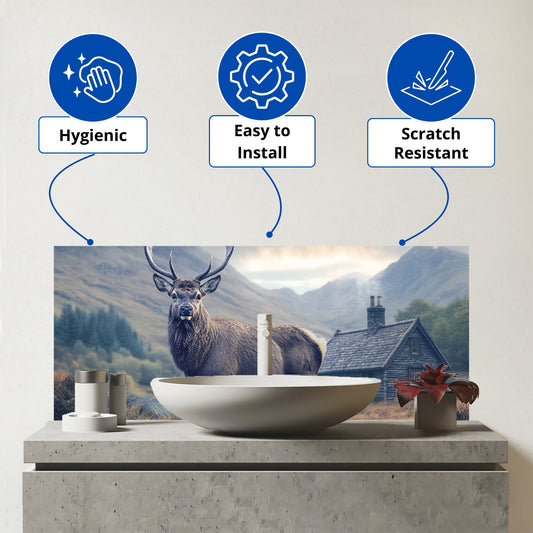 Highland Stag By The Cottage Glass Bathroom Splashback