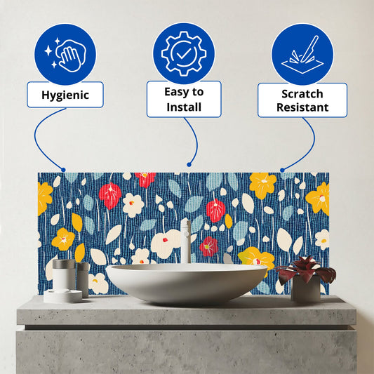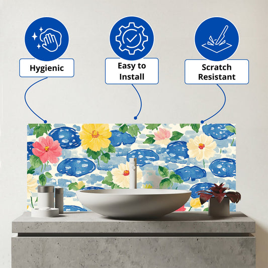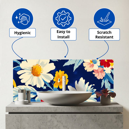 Bright Spring Flowers In Bloom Glass Bathroom Splashback