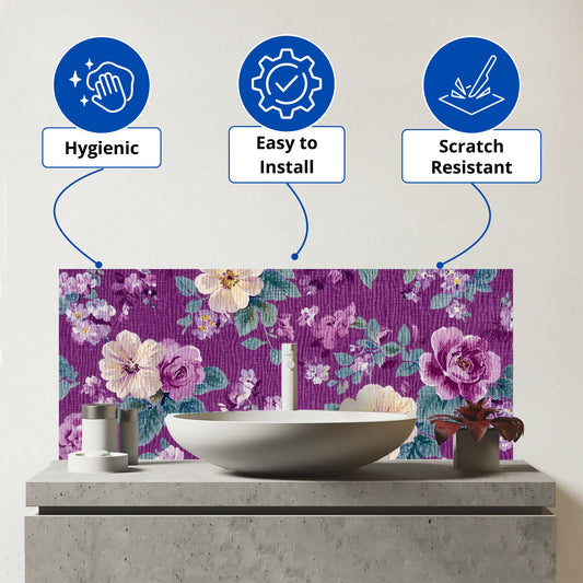 Vintage Purple Pattern Glass Bathroom Splashback