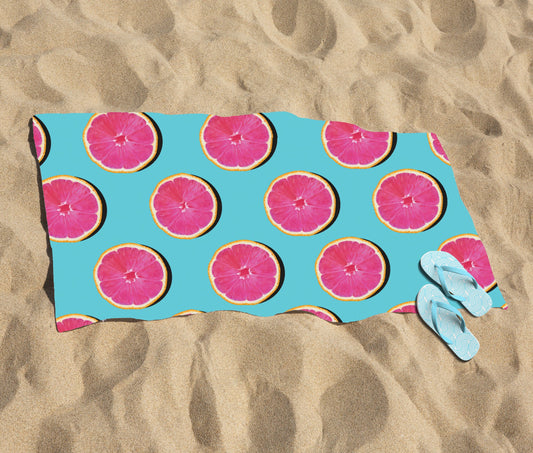 Fruity Pattern Of Pink Grapefruit Beach Towel