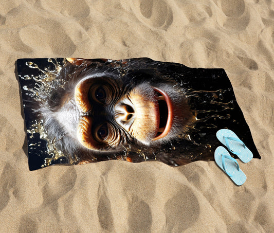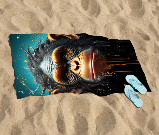 Realistic Monkey Face Splashart Beach Towel