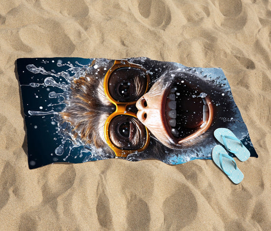 Splashart Cheeky Chimp Face With Glasses Beach Towel