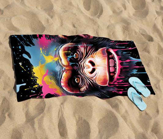 Coloured Splashart Crazy Monkey Face Beach Towel
