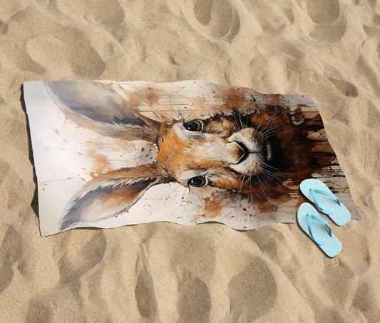 Watercolour Hare Face Beach Towel