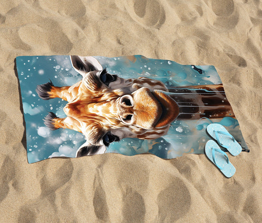 Splashart Giraffe Face Beach Towel