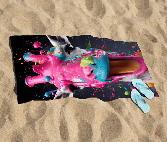 Rabbit Face Splashart Beach Towel