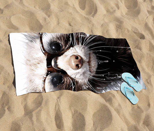 Splashart Ferret With Glasses Beach Towel