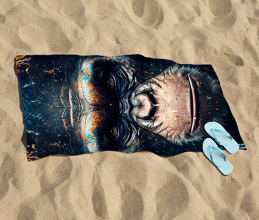 Gorilla Face Splashart Beach Towel