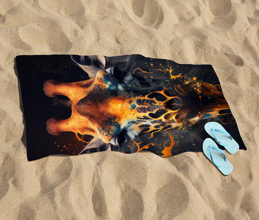 Blue Giraffe Face Splashart Beach Towel