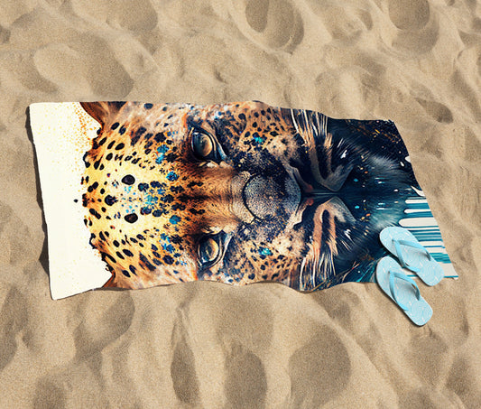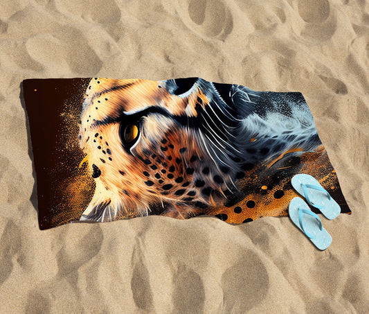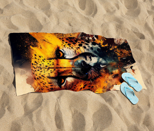 Cheetah Face Splashart Beach Towel