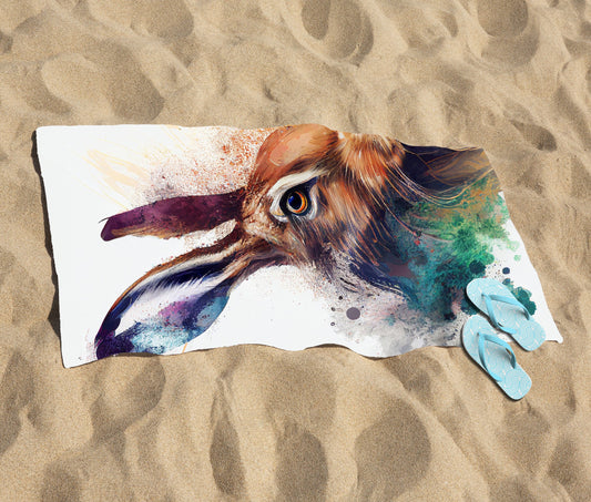 Hare Face Splashart Beach Towel