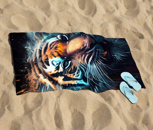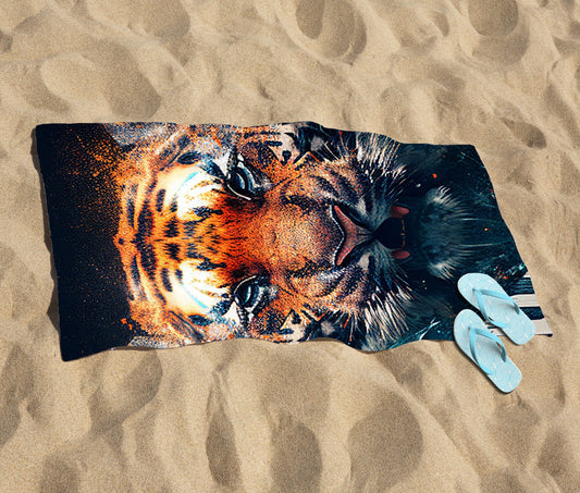Tiger Face Splashart Beach Towel