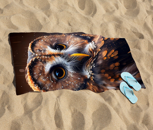 Tawny Owl Face Splashart Dark Background Beach Towel