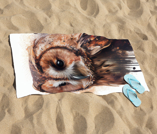 Tawny Owl Face Splashart Light Background Beach Towel