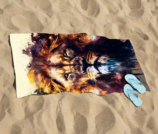 Majestic Lion Face Splashart Beach Towel