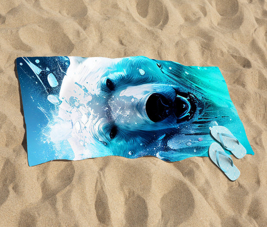 Polar Bear Face Splashart Beach Towel