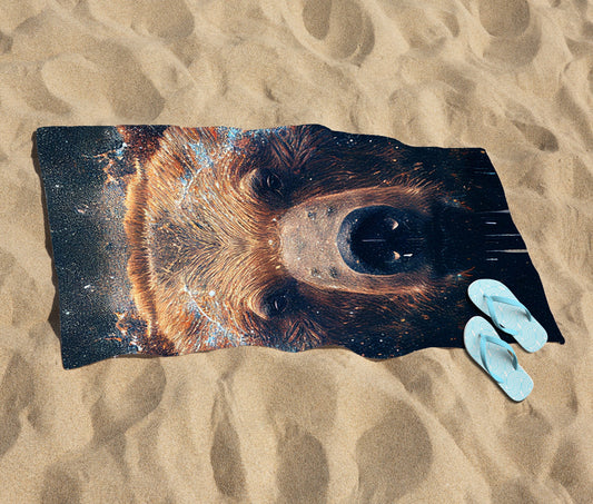 Brown Bear Face Splashart Beach Towel