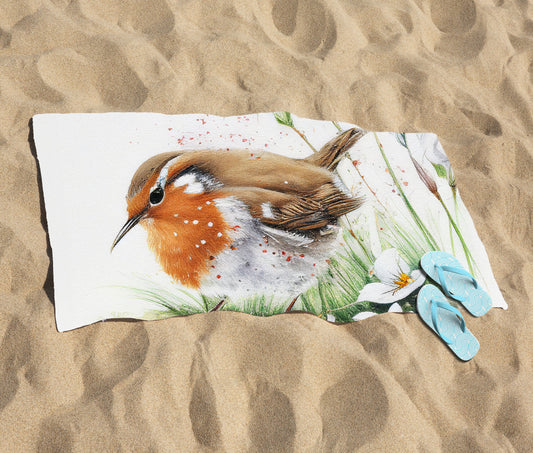 Robin And Daisies Watercolour Beach Towel