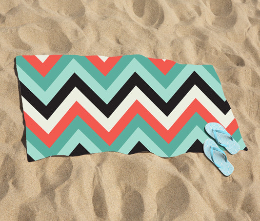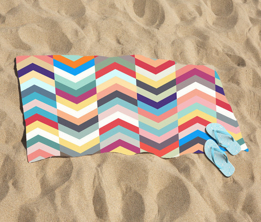 Geometric Multi Colored Chevron Pattern Beach Towel