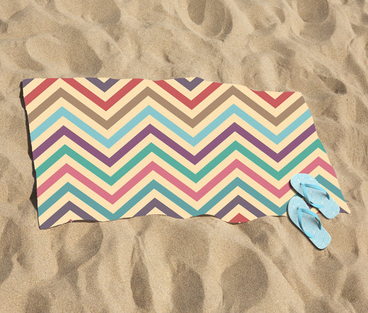 Geometric Vintage Colored Chevron Pattern Beach Towel