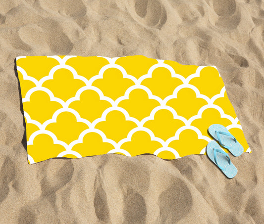 Geometric Yellow Quatrefoil Wave Beach Towel