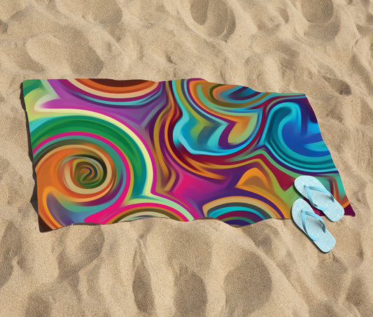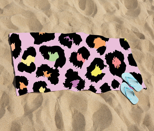 Abstract Bright Colorful Tropical Leaves Beach Towel