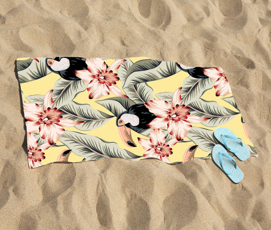 Toucans, Orchids And Palm Leaves Beach Towel