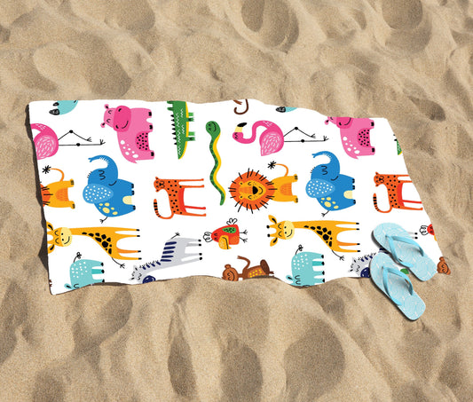 Hand Drawn Cartoon Animals Beach Towel