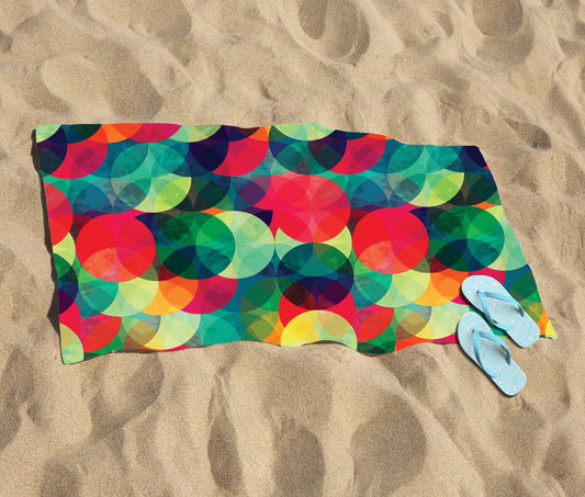 Colourful Grunge Circle Pattern Beach Towel