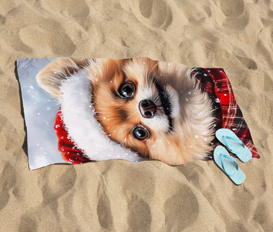 Christmas Pomeranian Beach Towel