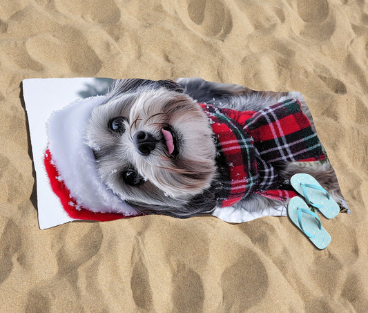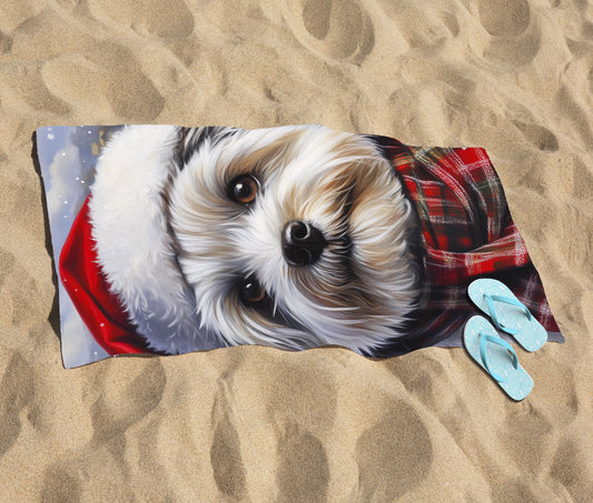 Christmas Lhasa Apso Beach Towel