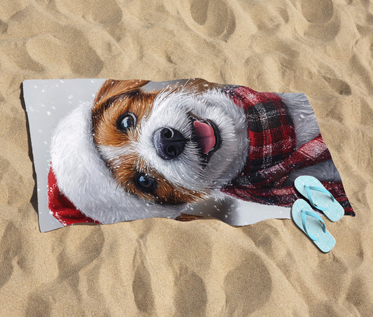 Christmas Jack Russell Beach Towel