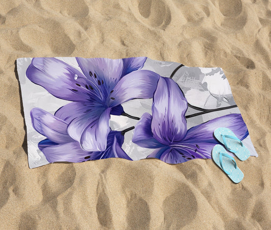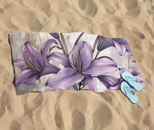Purple Lilies Beach Towel