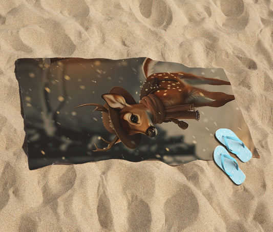 Fawn In A Snowy Scene Beach Towel