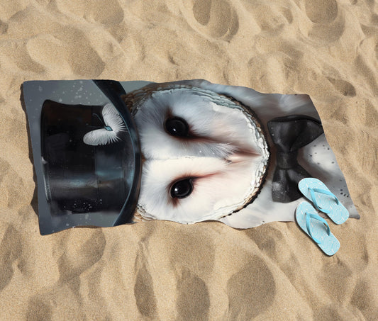 Owl In A Top Hat Beach Towel