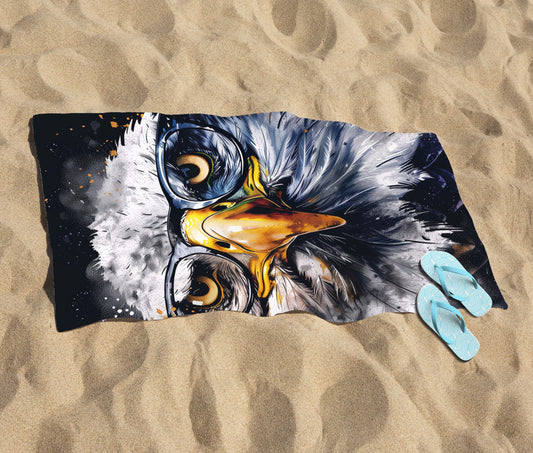 Eagle In Glasses Splashart Beach Towel