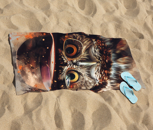 Owl With Hat And Glasses Beach Towel