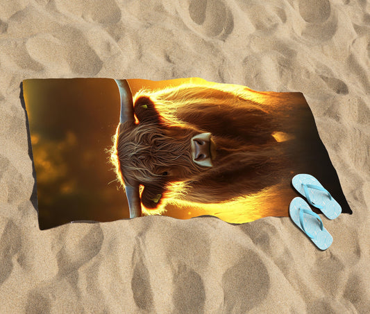 Highland Cow Sunset Beach Towel
