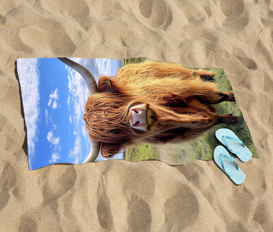 Watercolour Highland Cow Beach Towel