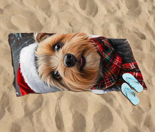 Christmas Yorkshire Terrier Beach Towel