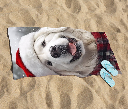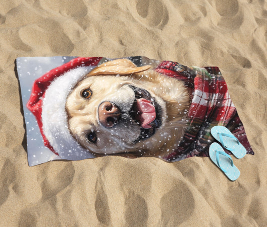Christmas Yellow Labrador Beach Towel
