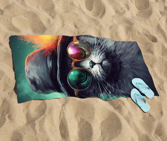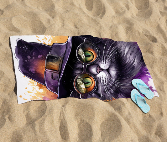 Splashart Longhaired Witches Cat Beach Towel