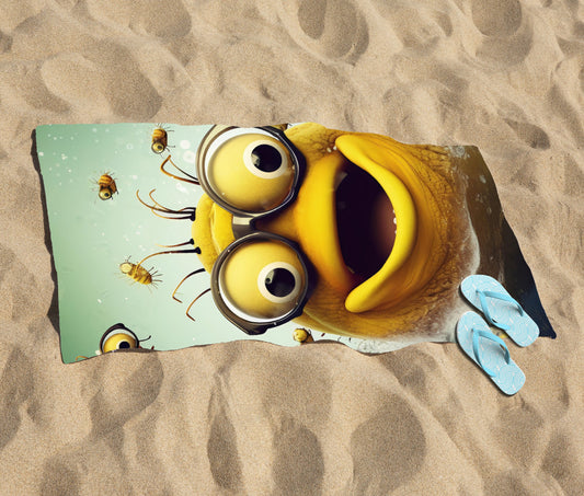 Happy Worm And Bees Splashart Beach Towel