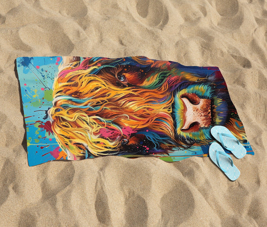 Splashart Highland Cow Beach Towel