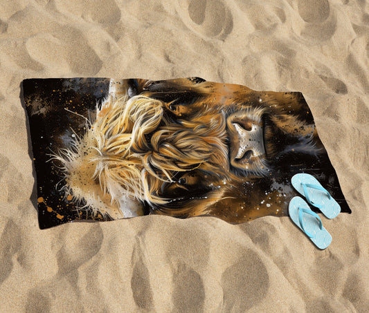 Bronze Splashart Highland Cow Beach Towel