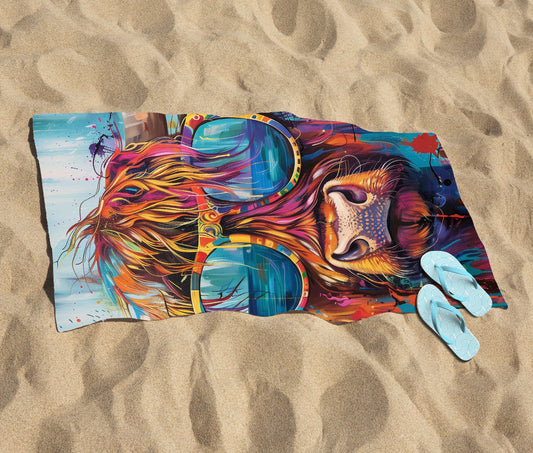 Splashart Highland Cow With Glasses Beach Towel